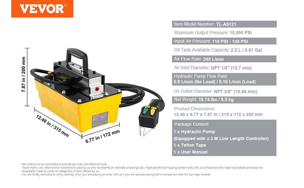 Získajte spoľahlivý výkon s naším vzduchovým hydraulickým čerpadlom 10 000 PSI. Je odolné, má pevný plášť, pohon na diaľkové ovládanie a z výroby je naplnené hydraulickým olejom (č. 13), vyznačuje sa jednoduchým ovládaním, základňou odolnou proti nárazom a rýchlym nastavením. Je pripravené na náročné práce, je efektívne a skonštruované tak, aby vydržalo.