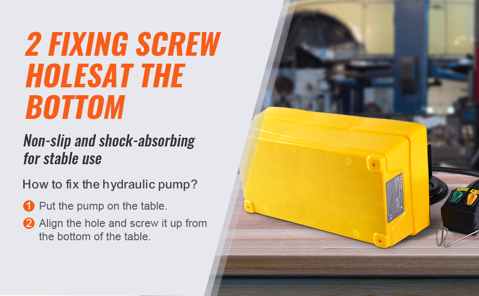 Vďaka dvom otvorom na upevňovacie skrutky v spodnej časti môžete toto hydraulické vzduchové čerpadlo zabezpečiť na stabilné používanie bez vibrácií. Ide o to, aby vaše operácie boli stabilné a efektívne.