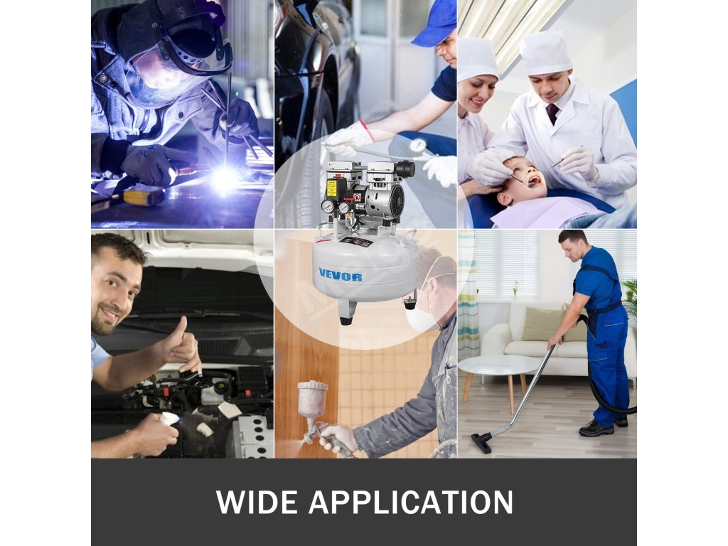 Tento vzduchový kompresor sa široko používa na hustenie pneumatík, opravu vozidiel, renováciu domov atď. Okrem toho je vhodný pre vŕtačky, klincovačky, pneumatické kľúče, striekacie pištole a iné pneumatické náradie.