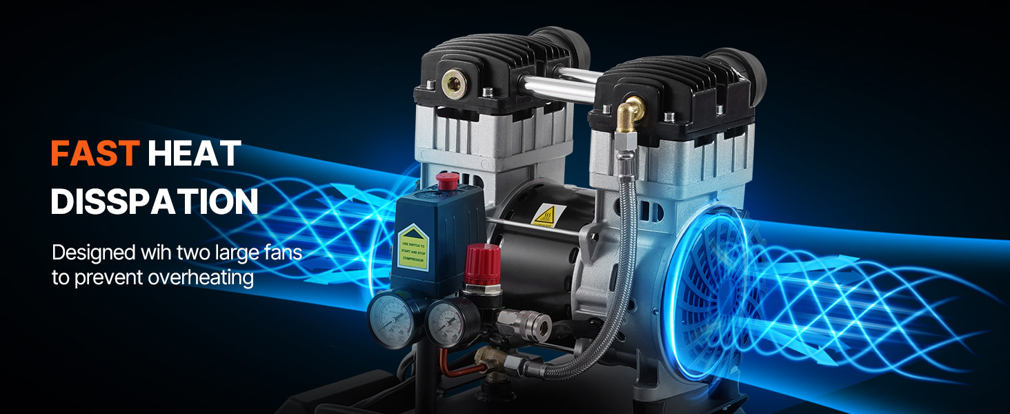 Vďaka pokročilej konštrukcii rýchleho chladenia tento mimoriadne tichý kompresor účinne znižuje prevádzkovú teplotu a predlžuje životnosť zariadenia. Jeho účinný chladiaci systém zabezpečuje stabilný výkon počas dlhej nepretržitej práce, čím zabraňuje vypnutiam a poškodeniu v dôsledku prehriatia.