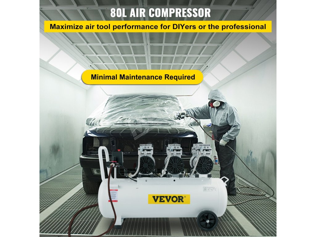 Vzduchový kompresor má 80L nádrž na maximalizáciu výkonu vzduchového náradia. Okrem toho je vybavený bezolejovým čerpadlom pre minimálnu údržbu.