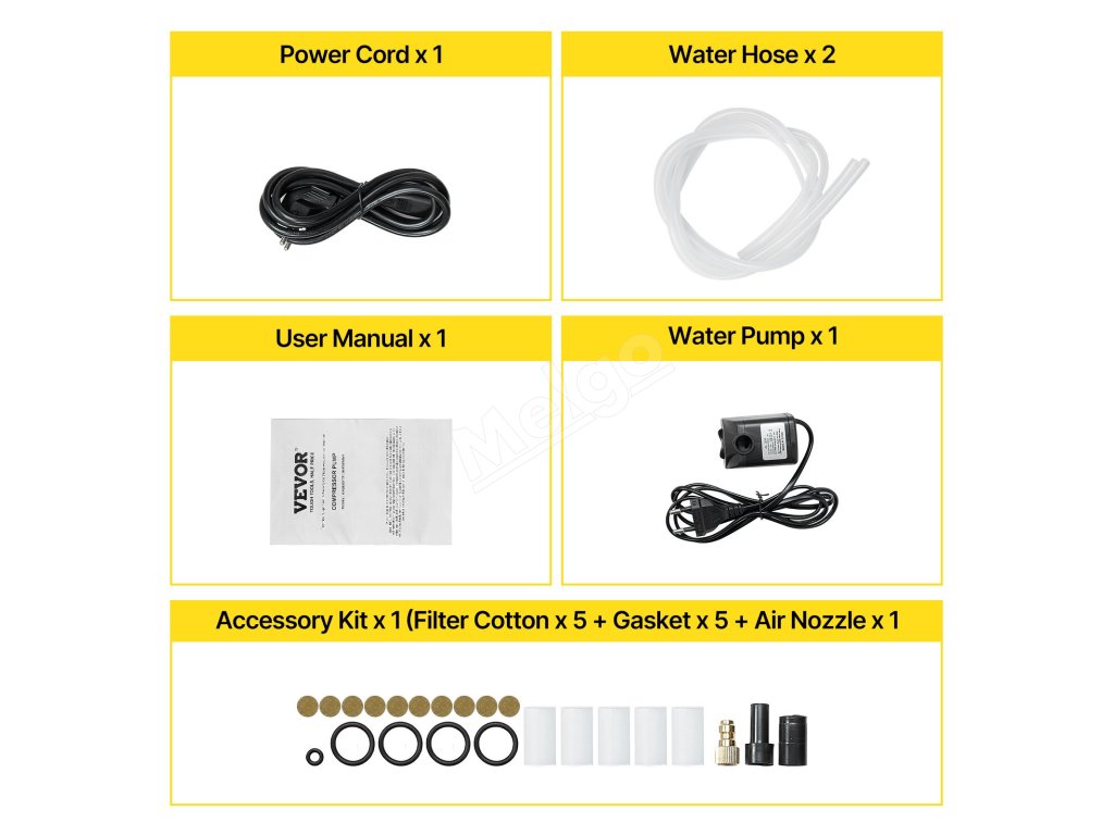 - Upozornenie: Mazací olej (0,4 l ISO VG46) a nádrž na vodu (používanú pre chladiaci systém) je potrebné zakúpiť samostatne.