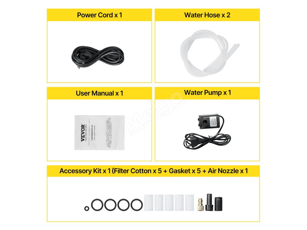 - Upozornenie: Mazací olej (0,4 l ISO VG46) a nádrž na vodu (používanú pre chladiaci systém) je potrebné zakúpiť samostatne.