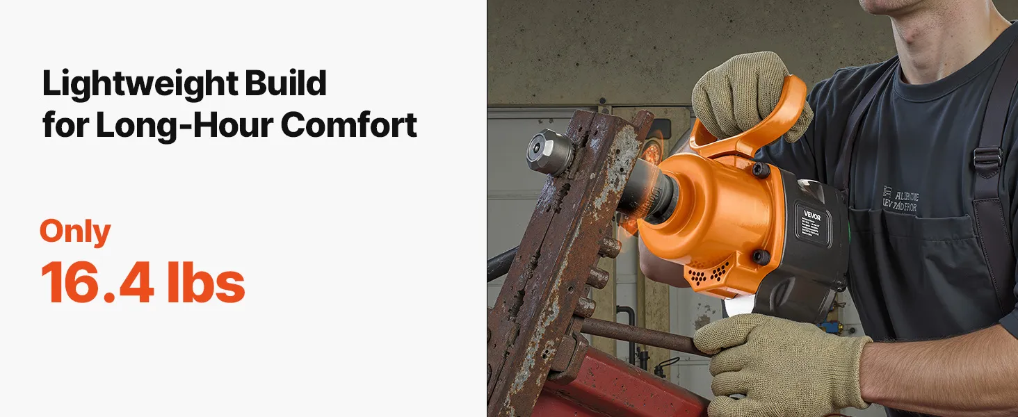 Telo vyrobené z odolnej, ale ľahkej hliníkovej zliatiny ponúka vynikajúcu pevnosť a ovládateľnosť, čím znižuje únavu počas dlhých úloh.