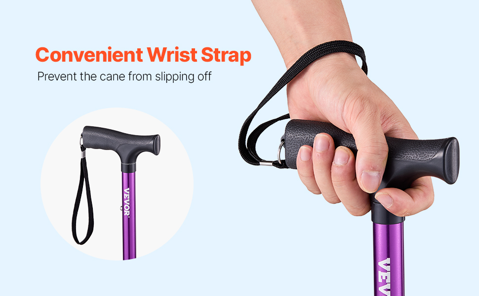 Premyslený pásik na zápästie zabraňuje náhodnému pádu skladacej vychádzkovej palice, čím zvyšuje bezpečnosť pri používaní.
