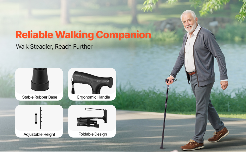 Naša vychádzková palica poskytuje výnimočnú stabilitu pre potreby každodennej mobility vďaka protišmykovej špičke z gumy TPR, 5-stupňovej výške, skladaciemu dizajnu a nosnosti 220 libier. Jej ergonomický dizajn znižuje namáhanie rúk a umožňuje vám chodiť s ľahkosťou a istotou - ideálna pre osoby s pohybovými problémami.