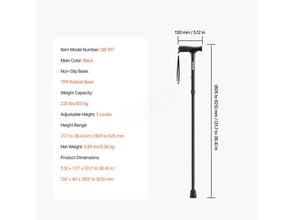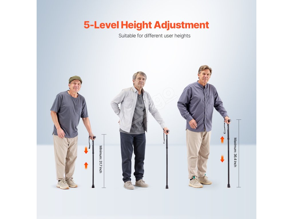 Naša vychádzková palica poskytuje výnimočnú stabilitu pre potreby každodennej mobility vďaka protišmykovej špičke z gumy TPR, 5-stupňovej výške, skladaciemu dizajnu a nosnosti 220 libier. Jej ergonomický dizajn znižuje namáhanie rúk a umožňuje vám chodiť s ľahkosťou a istotou - ideálna pre osoby s pohybovými problémami.