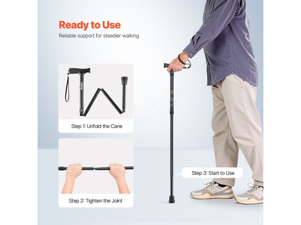 Táto pomôcka na mobilitu pri chôdzi pre mužov ženy, navrhnutá z ľahkých materiálov, sa ľahko prenáša. Jej kompaktná skladacia konštrukcia umožňuje bezproblémové uloženie do batohu alebo batožiny, čo z nej robí ideálneho spoločníka na použitie v interiéri aj exteriéri.