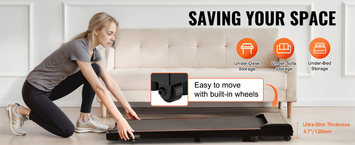 Náš bežecký trenažér sa ľahko skladuje a prenáša. Môžete ho bez námahy umiestniť pod nábytok, ako je pohovka alebo posteľ. Zabudované kolieska ešte viac zvyšujú prenosnosť, takže ho môžete pohodlne premiestňovať podľa potreby.