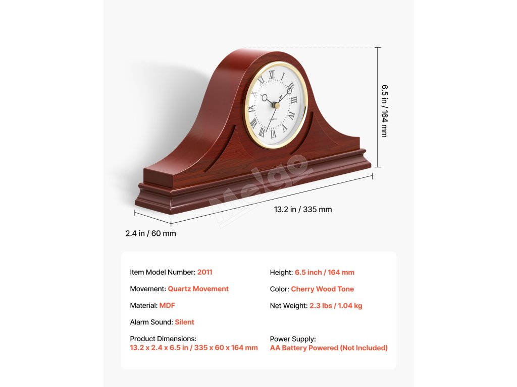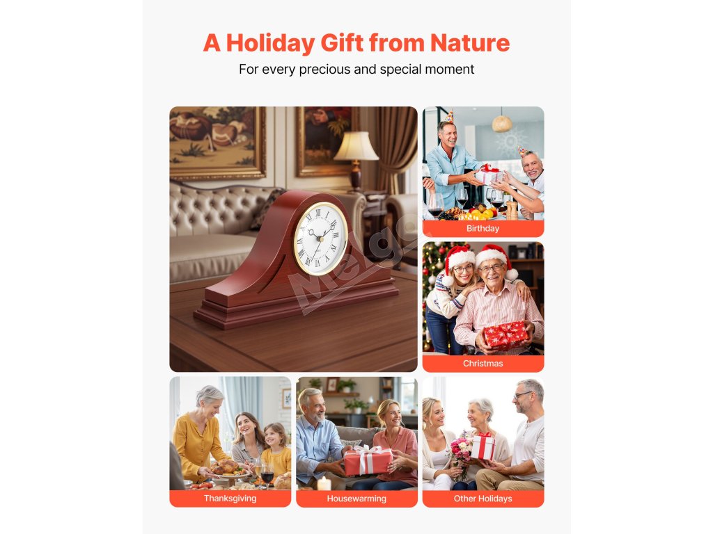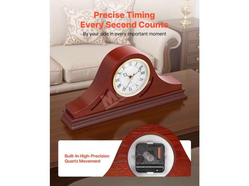 Tieto nostalgické krbové hodiny s priemerom 6,4 palca (162,5 mm) sa hodia do rôznych štýlov domov. Vďaka drevenému rámu s čerešňovou povrchovou úpravou sú odolné a ručne vyrobené pre eleganciu. Kremenný mechanizmus zabezpečuje presné meranie času s tichým dizajnom - ideálny darček na sviatky inšpirovaný prírodou.