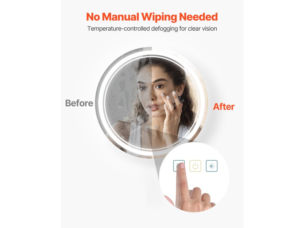 Toto nástenné led zrkadlo do kúpeľne ponúka plynulé stmievanie, tri nastaviteľné teploty farieb a neskreslený odraz s funkciou proti zahmlievaniu, vďaka čomu je ideálnou voľbou pre vašu efektívnu starostlivosť a líčenie.
