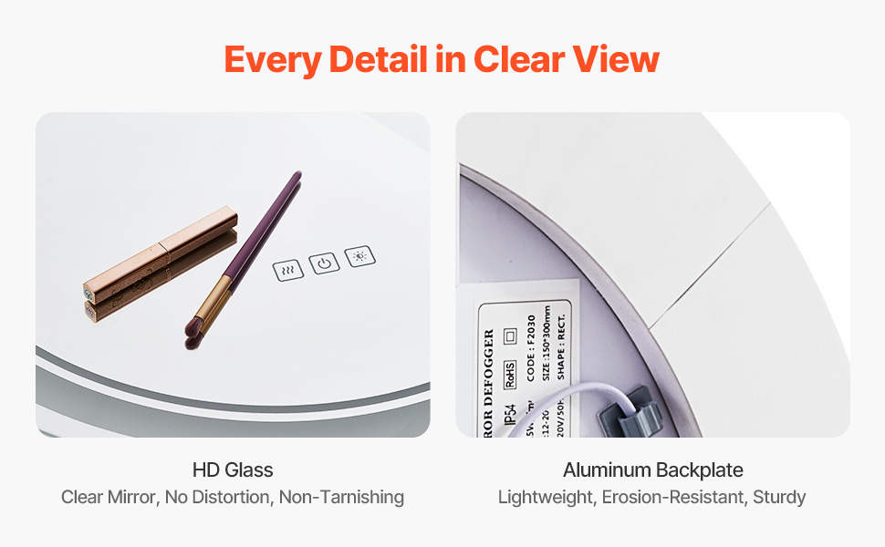 Povrchová úprava led kúpeľňového zrkadla s osvetlením obsahuje epoxidovú živicu, ktorá zabraňuje oxidácii a stmavnutiu pri dlhodobom používaní, čím sa povrch zrkadla udržiava v bezchybnom stave. V spojení so zadným panelom z hliníkovej zliatiny je odolný proti opotrebovaniu a účinne zvyšuje stabilitu a životnosť.