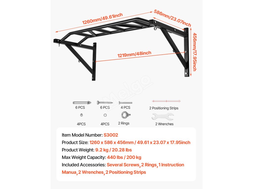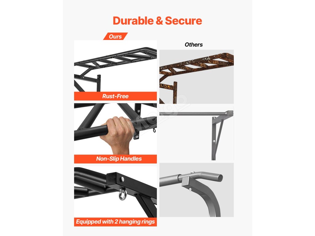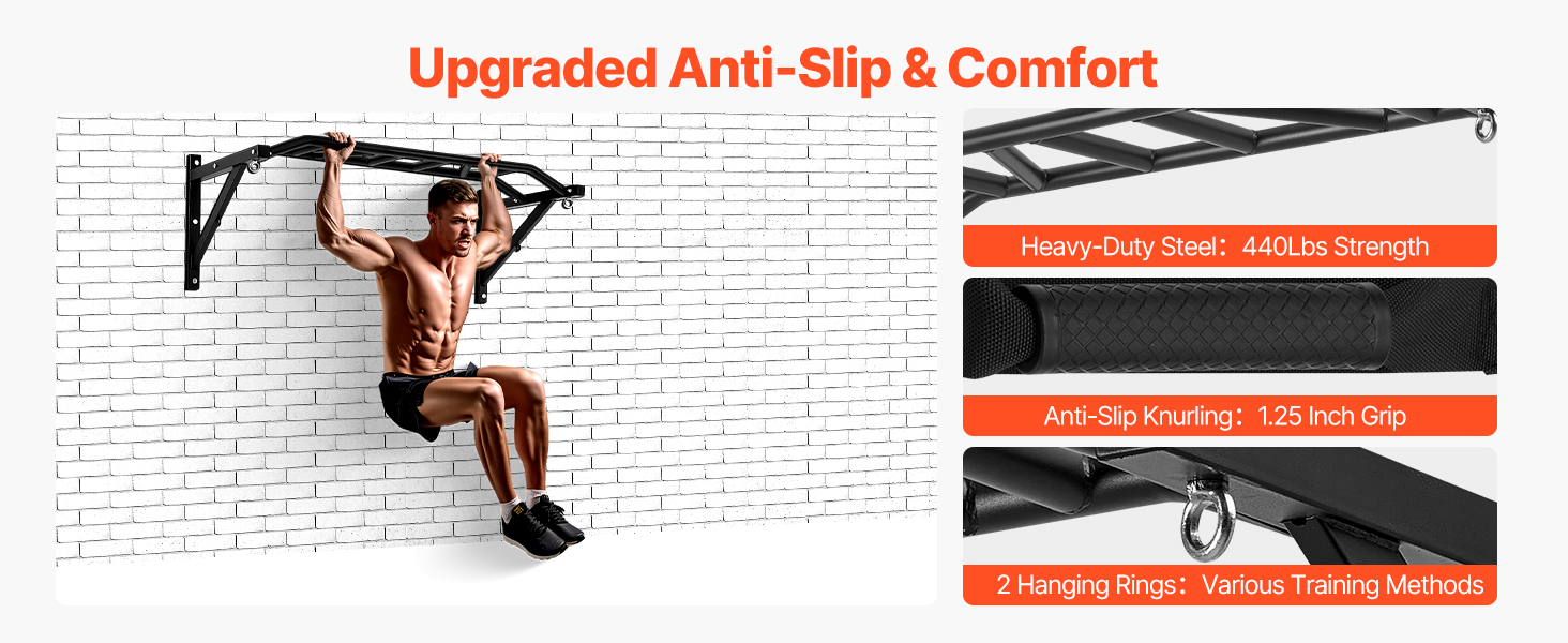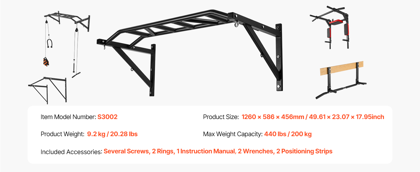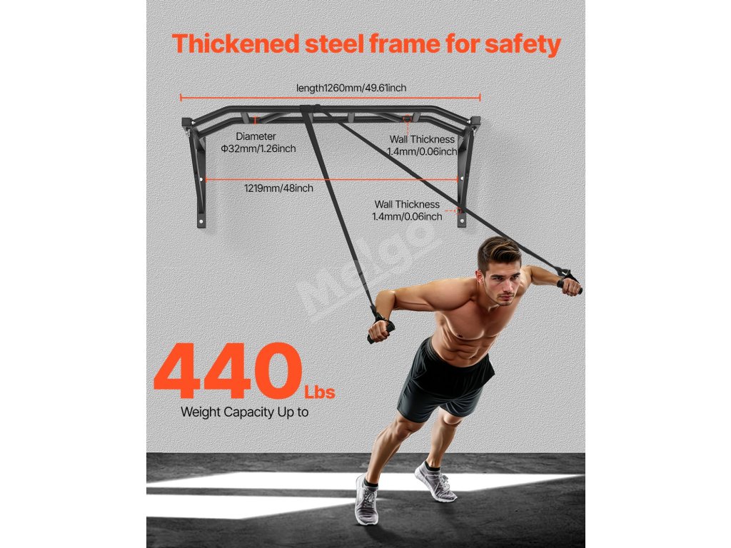 Hrazda na cvičenie príťahov hornej časti tela je vyrobená z odolnej ocele, unesie až 440 kg a zachováva si svoj výkon aj pri dlhodobom používaní. Celková šírka je 50 palcov, s 1,25-palcovými vrúbkovanými úchytmi, vďaka čomu je ideálna pre domáce tyče na zdvíhanie.