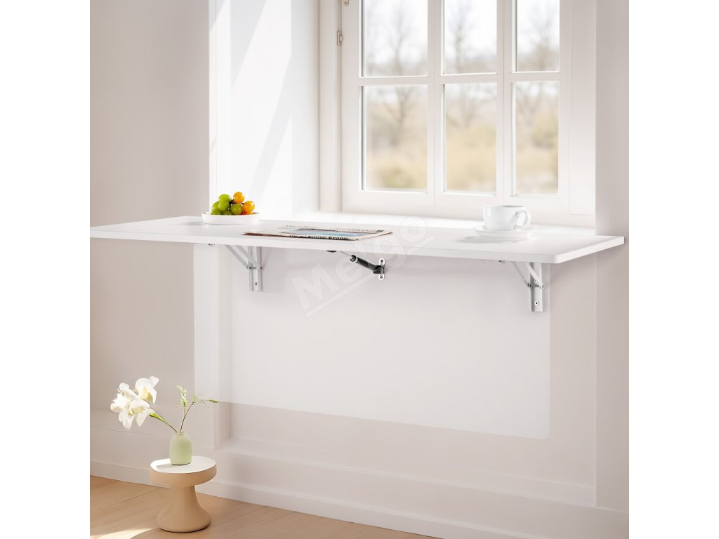 Nástenný skladací stôl 43.3×18 inches s oceľovým držiakom, biely