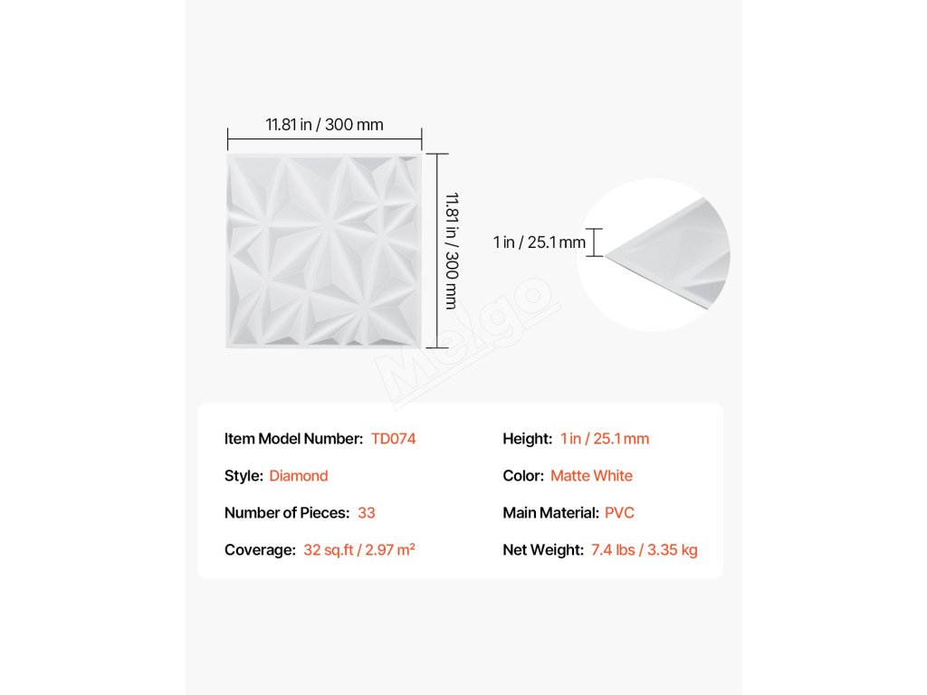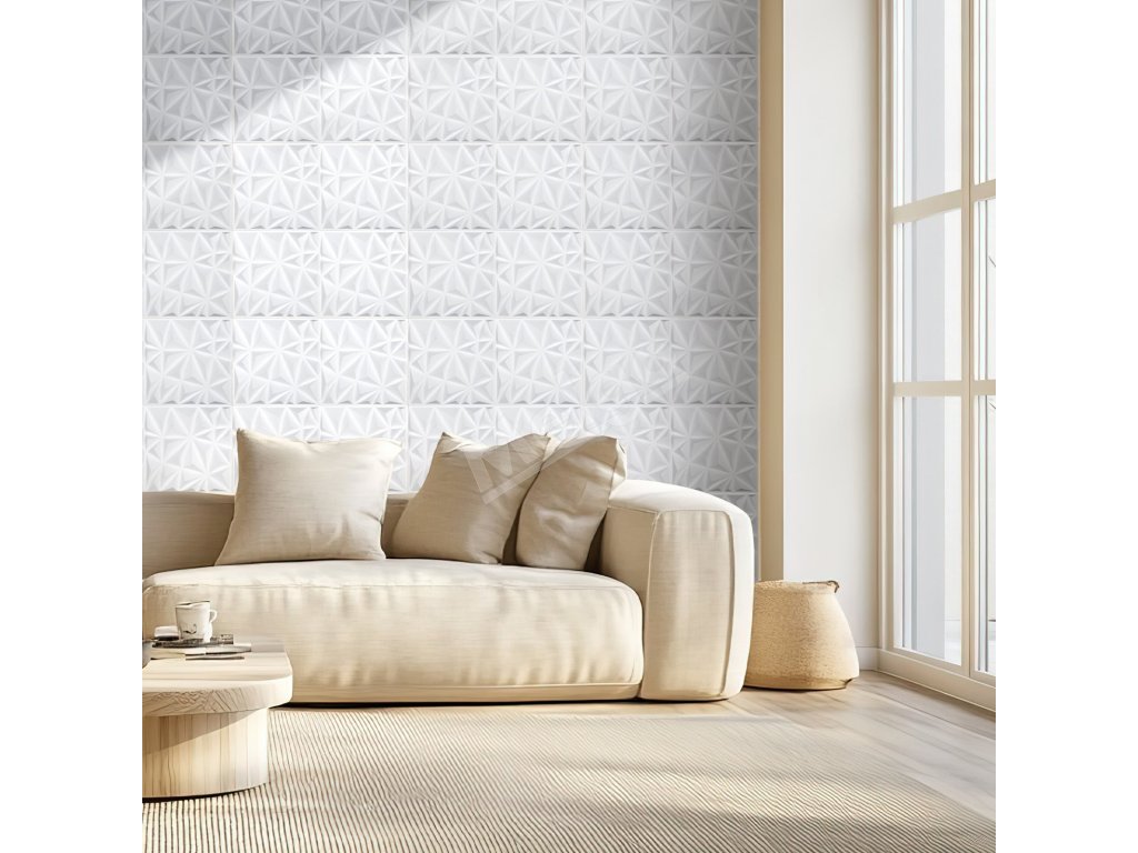 3D nástenné panely 33 ks PVC 11.81×11.81 in, 32 Sq.Ft, matná biela