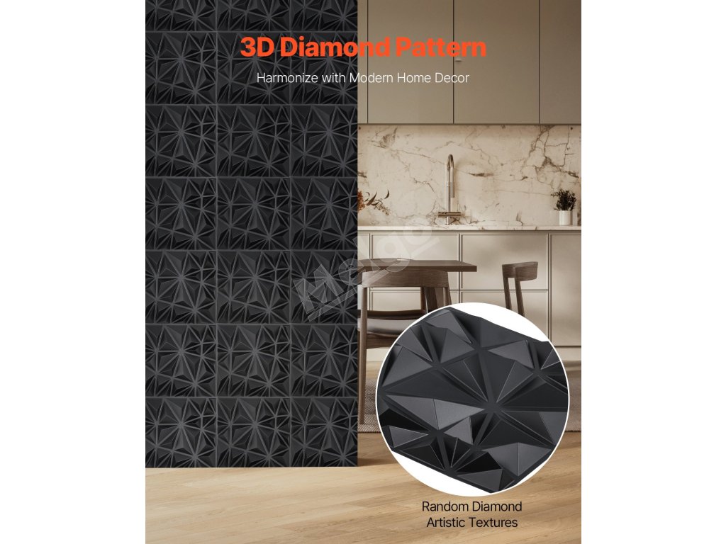 Nástenné 3d panely pvc 33 kusov 11.81×11.81 in 32 sq.ft matná čierna