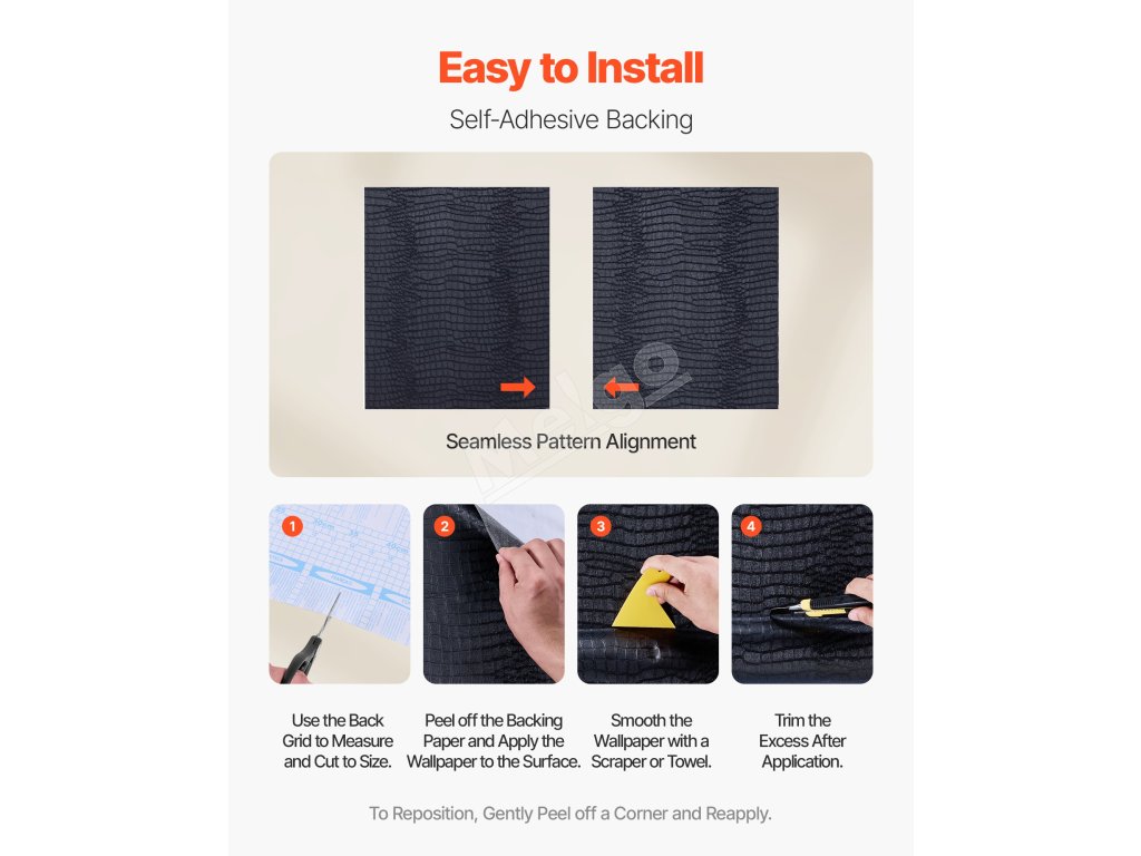 Táto veľká rolka samolepiacich tapiet má elegantný dizajn, hodí sa k rôznym štýlom dekorácie a pokryje veľké plochy. Vďaka mriežkovým líniám na presné rezanie je vodoodolná a ľahko sa čistí. Ideálna do spální, kuchýň, kancelárií a ďalších priestorov.