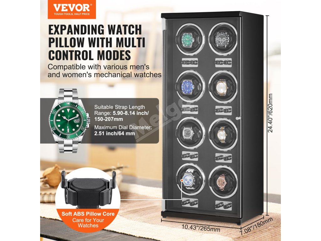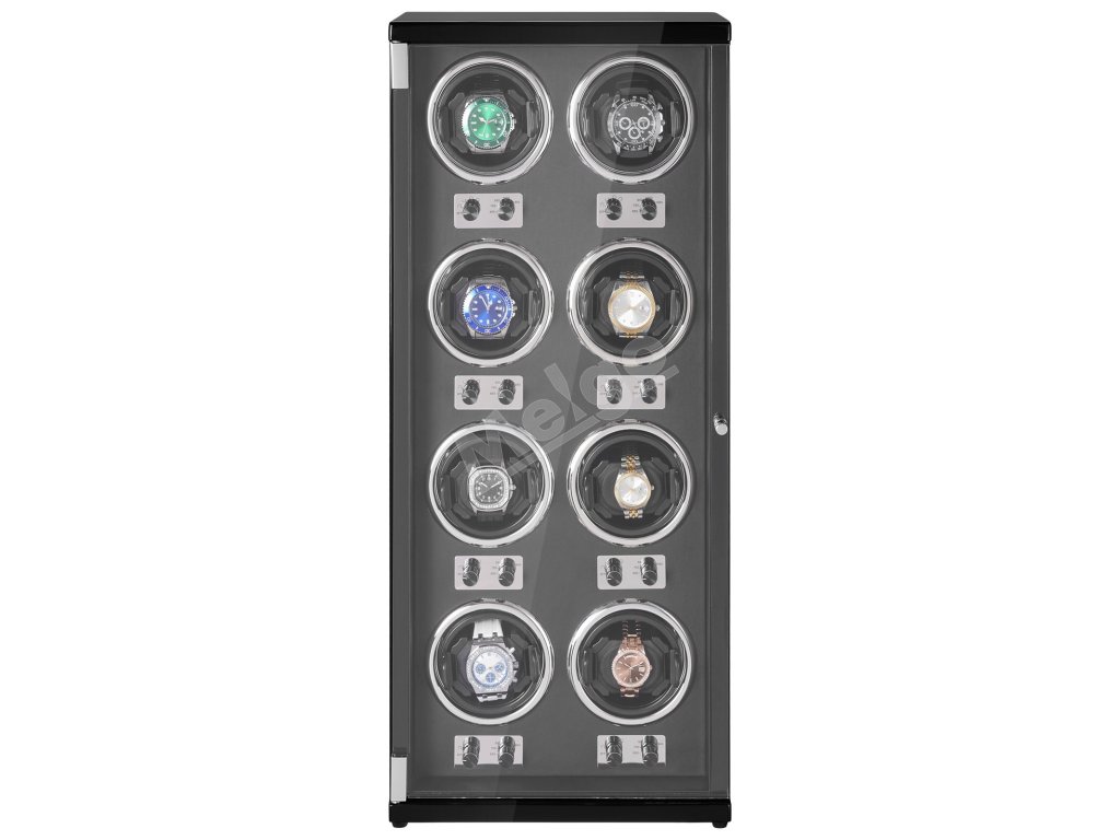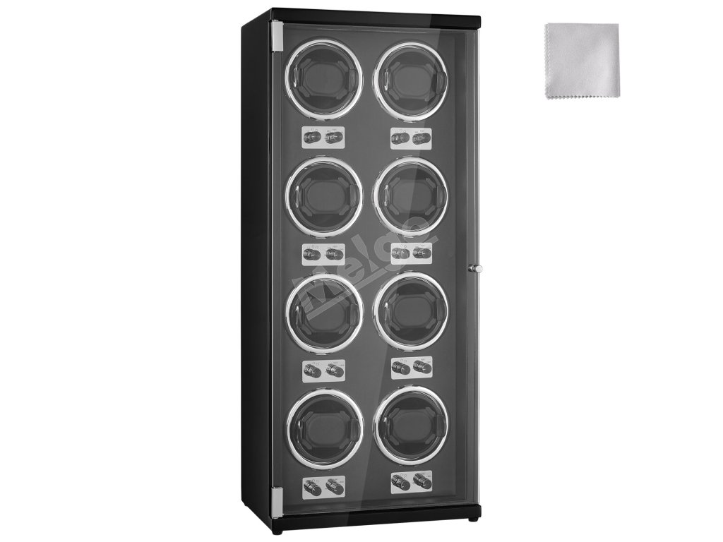 Navíjač 8 automatických hodiniek, tiché motory, modré led, čierne pu