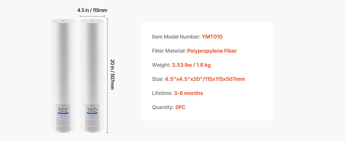 Náhradná kazeta má štandardnú veľkosť 4,5" x 20" s vysokou prietokovou kapacitou, je kompatibilná s väčšinou filtračných puzdier a systémov filtrovania vody v celom dome, vďaka čomu je výmena jednoduchá a bezproblémová.