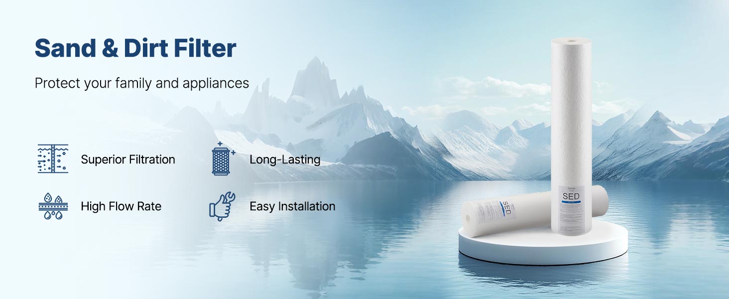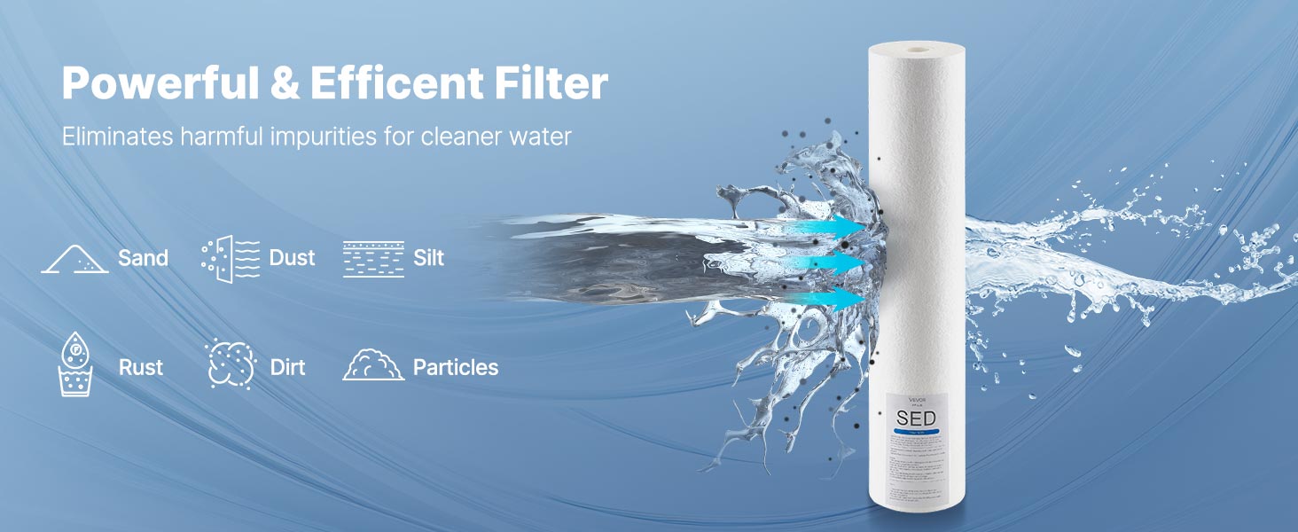 Sedimentačný filter s presnosťou 5 mikrónov účinne odstraňuje piesok, hrdzu a suspendované častice, čím predlžuje životnosť nadväzujúcich filtrov a zariadení.