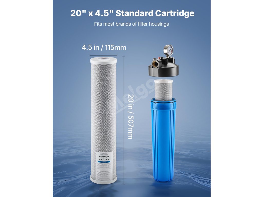 Náhradná kazeta má štandardnú veľkosť 4,5" x 20" s vysokou prietokovou kapacitou, je kompatibilná s väčšinou filtračných puzdier a systémov filtrovania vody v celom dome, vďaka čomu je výmena jednoduchá a bezproblémová.