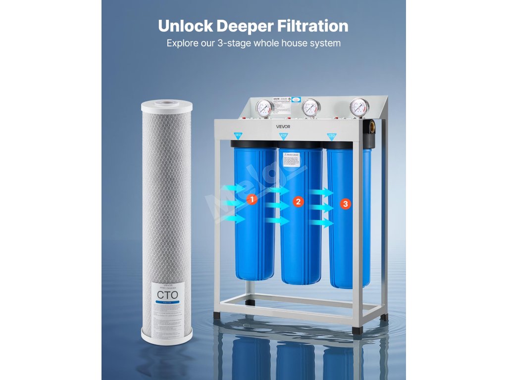 Náš 3-stupňový systém filtrácie vody pre celú domácnosť využíva viacero filtračných procesov na hĺbkové čistenie vody z vodovodu a studne, pričom odstraňuje nečistoty a kontaminanty, aby zabezpečil čistú vodu v celej vašej domácnosti.