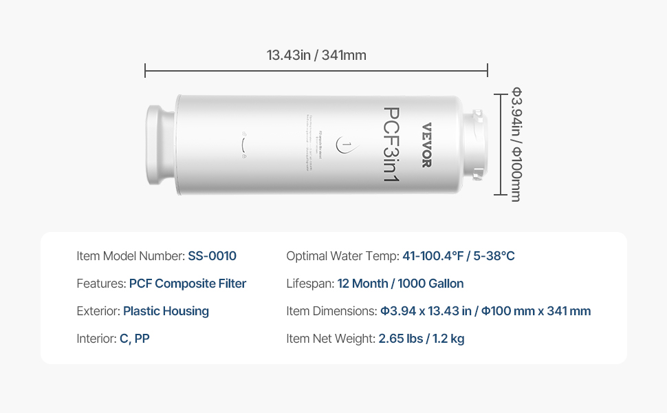 Vďaka pokročilej filtračnej technológii a otočnému vstupu vody zvyšuje náš filter PCF pre systém filtrovania vody pod umývadlom prietok a znižuje riziko upchatia. Dodáva až 12 mesiacov alebo 1100 galónov čistej vody, čím uspokojí prvotriedne hydratačné potreby vašej rodiny.
