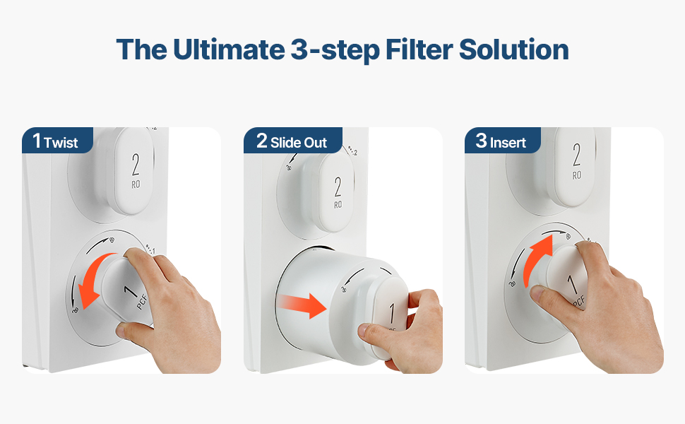 Stačí ho jednoducho otočiť a vytiahnuť! Filter nášho systému na filtrovanie vody pod umývadlom vymeníte bez námahy, bez použitia náradia alebo premiestňovania zariadenia. Vychutnajte si bezproblémovú výmenu filtra v priebehu niekoľkých sekúnd.