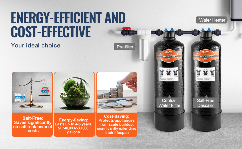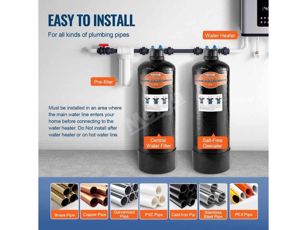 Vychutnajte si čistú vodu v celom dome s odstraňovačom vodného kameňa VEVOR bez soli