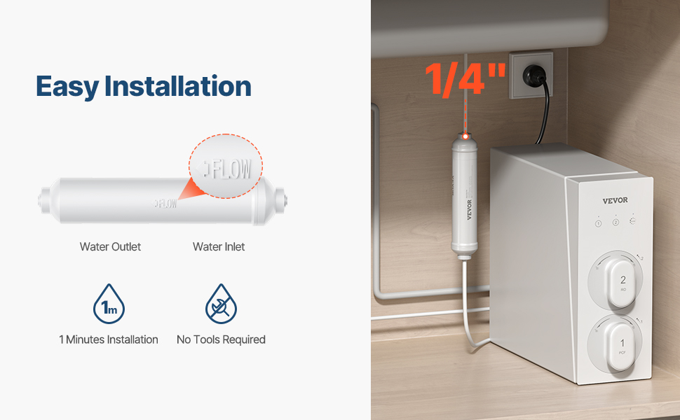 Vďaka 1/4" rýchlospojke je inštalácia filtračnej patróny na našom systéme vodného filtra pod umývadlo jednoduchá. Na rýchlu a bezproblémovú inštaláciu stačí sledovať smerovú šípku na štítku filtra.
