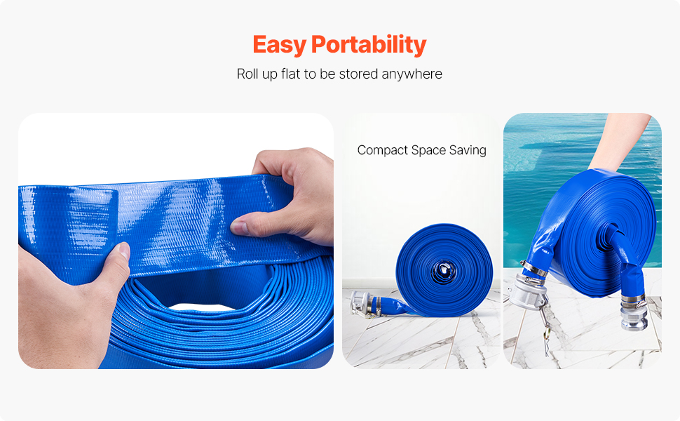 Súpravu hadice na spätné preplachovanie možno ohýbať, skladať a zrolovať na plocho na jednoduché skladovanie a prenášanie.