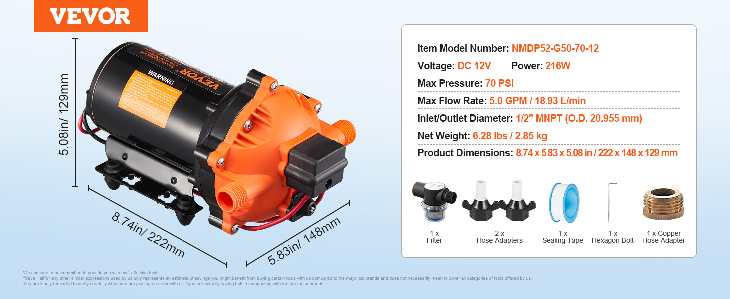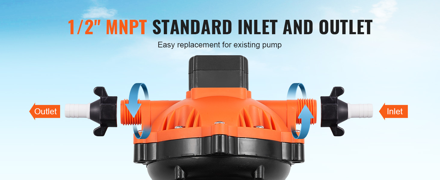 Vstup aj výstup sú vybavené štandardnými rozhraniami 1/2" MNPT, pričom naše 12 V vodné čerpadlo s tlakovým spínačom zabezpečuje kompatibilitu s vaším existujúcim čerpadlom. Výmena a inštalácia sú rýchle a bezproblémové.