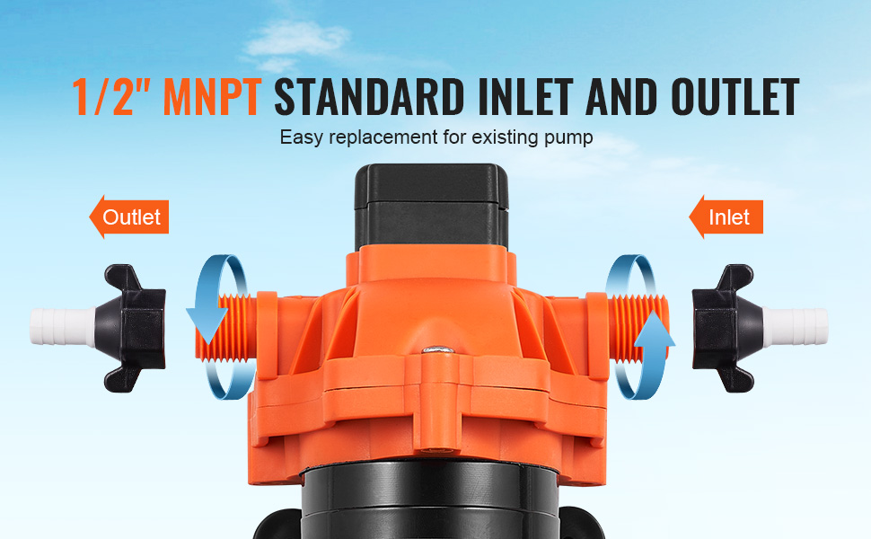 Vstup aj výstup sú vybavené štandardnými rozhraniami 1/2" MNPT, pričom naše 12 V vodné čerpadlo s tlakovým spínačom zabezpečuje kompatibilitu s vaším existujúcim čerpadlom. Výmena a inštalácia sú rýchle a bezproblémové.