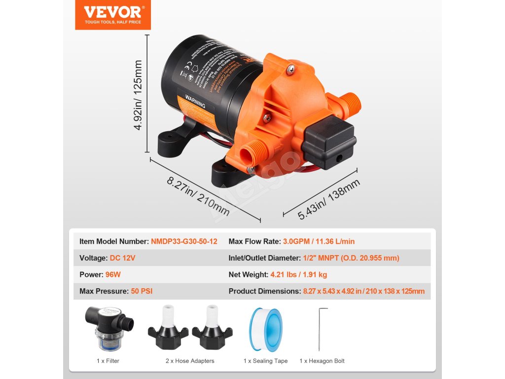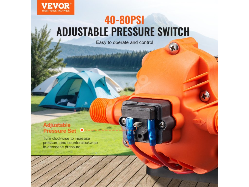 Toto 12 V membránové čerpadlo poskytuje pôsobivý prietok 3,0 GPM (11,36 l/min) a prednastavený tlak 50 PSI, čím zabezpečuje efektívne a spoľahlivé zásobovanie vodou. Je vybavené nastaviteľným tlakom 40 až 100 PSI, motorom z čistej medi a štandardným portom 1/2" MNPT. Zvýšte úroveň svojho vodného systému ešte dnes!