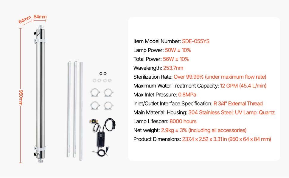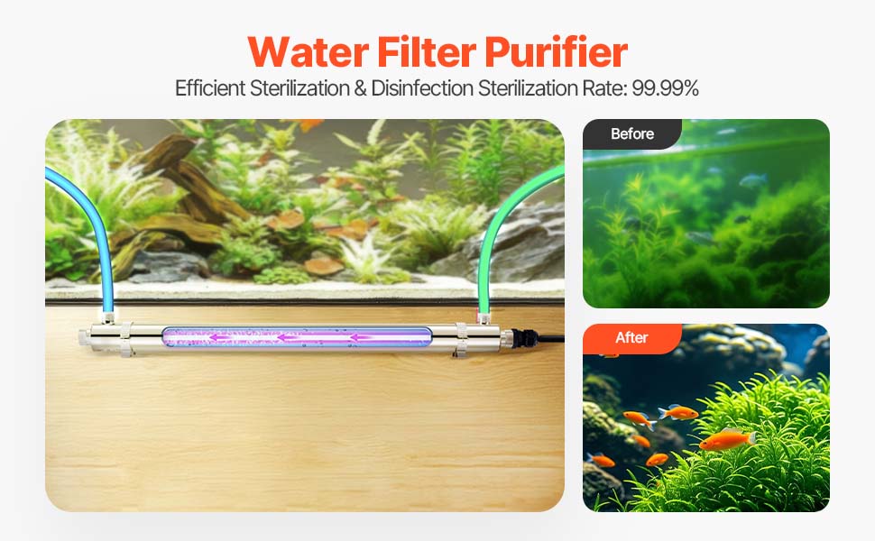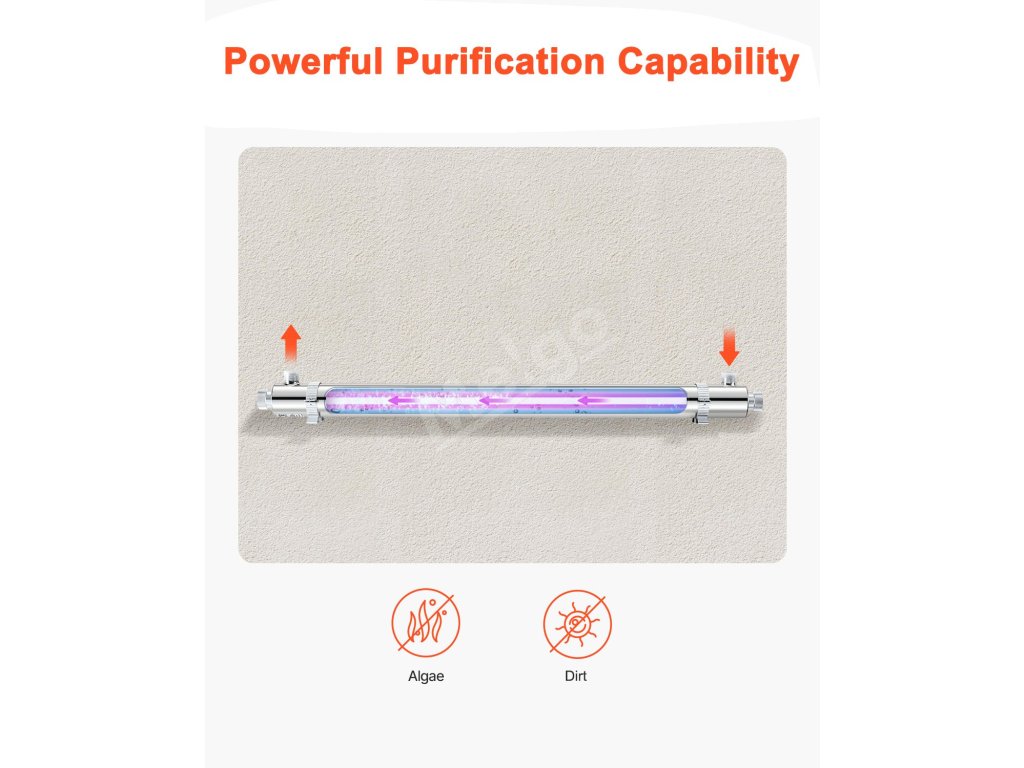 Ultrafialový filter čističa vody poskytuje 99,99 % sterilizáciu pre čistú vodu bez baktérií. Vďaka odolnej komore z nehrdzavejúcej ocele a UV lampe s životnosťou až 8 000 hodín zaručuje dlhodobý výkon. Jednoduchá inštalácia a obsluha, vychutnajte si vyčistenú vodu okamžite!