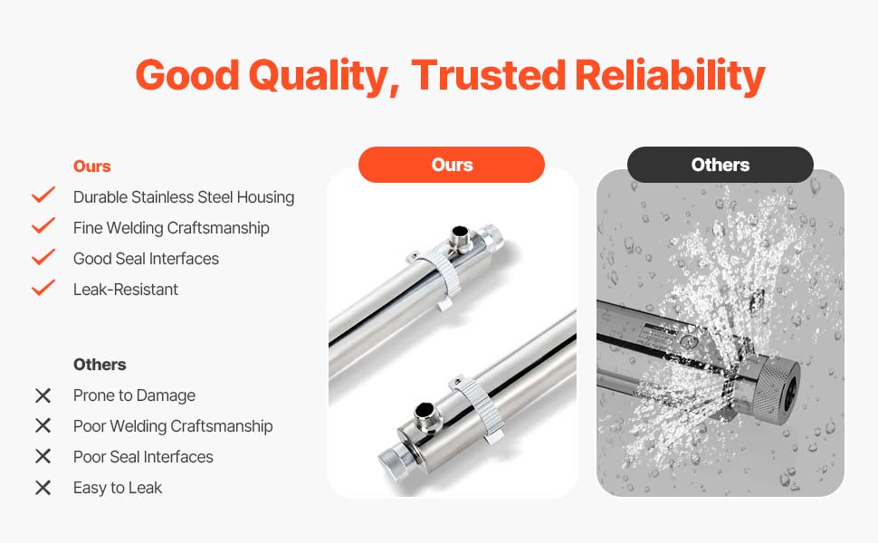 Tento výrobok, skonštruovaný s odolnou komorou z nehrdzavejúcej ocele a precíznym zváraním, zabezpečuje vynikajúci tesniaci výkon a zabraňuje úniku vody. Vďaka svojej robustnej konštrukcii je spoľahlivým a dlhotrvajúcim riešením pre vaše potreby čistenia vody a ponúka pokoj pri každom použití.