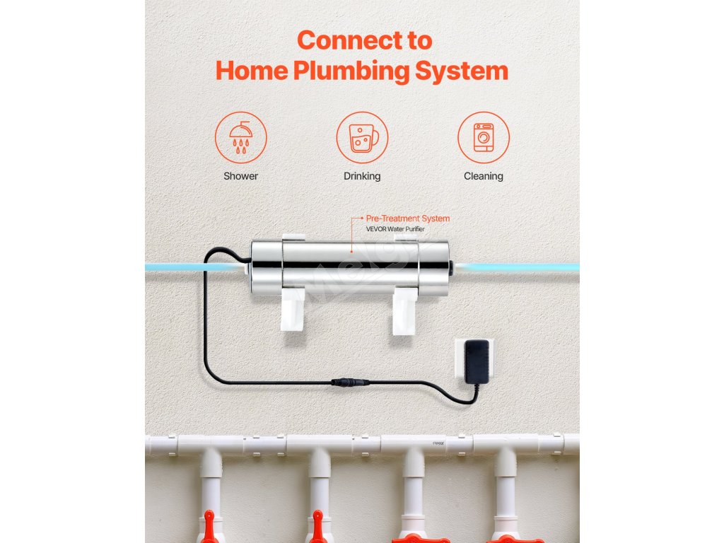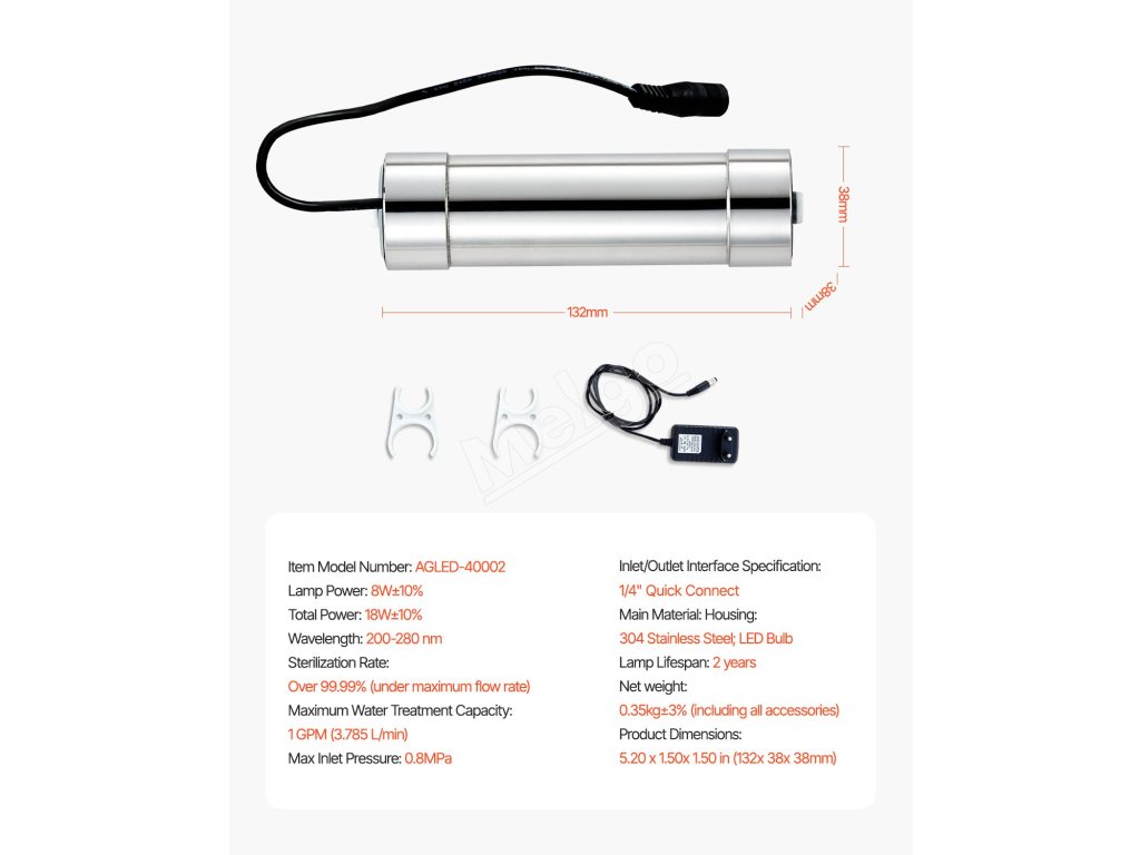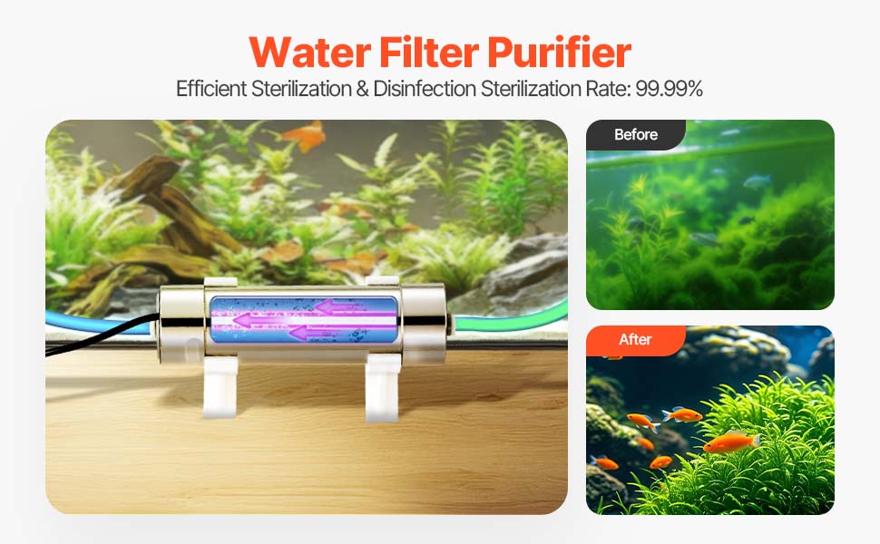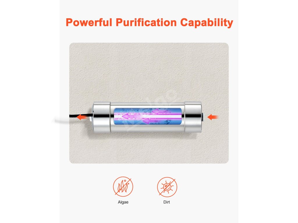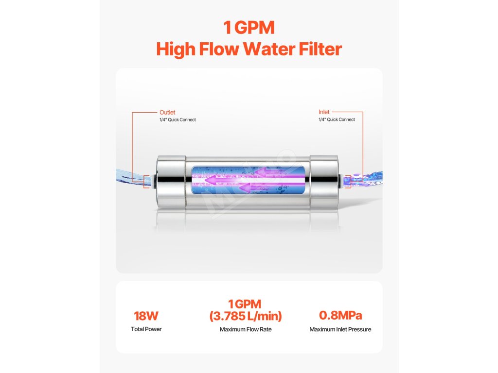Ultrafialový filter čističa vody poskytuje 99,99 % sterilizáciu pre čistú vodu bez baktérií. Vďaka odolnej komore z nehrdzavejúcej ocele a UV lampe s životnosťou až 8 000 hodín zaručuje dlhodobý výkon. Jednoduchá inštalácia a obsluha, vychutnajte si vyčistenú vodu okamžite!