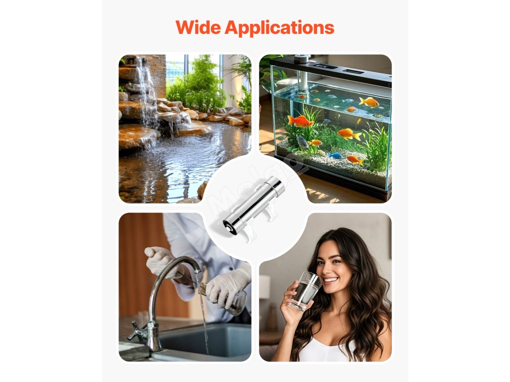 Tento čistič je ideálny pre širokú škálu nastavení. Či už ide o jazierka, akváriá, laboratóriá, alebo dokonca komerčné priestory, ako sú nákupné centrá, ľahko sa prispôsobí potrebám čistenia vody v rôznych prostrediach, vďaka čomu je dobrou voľbou pre rôzne aplikácie.