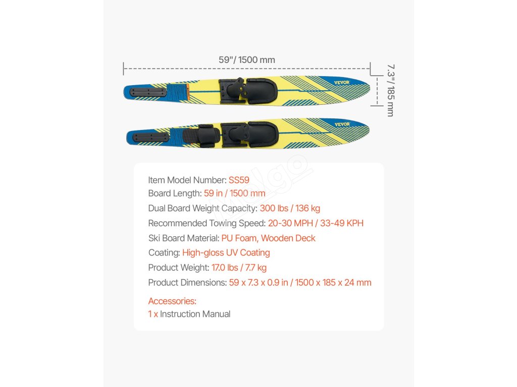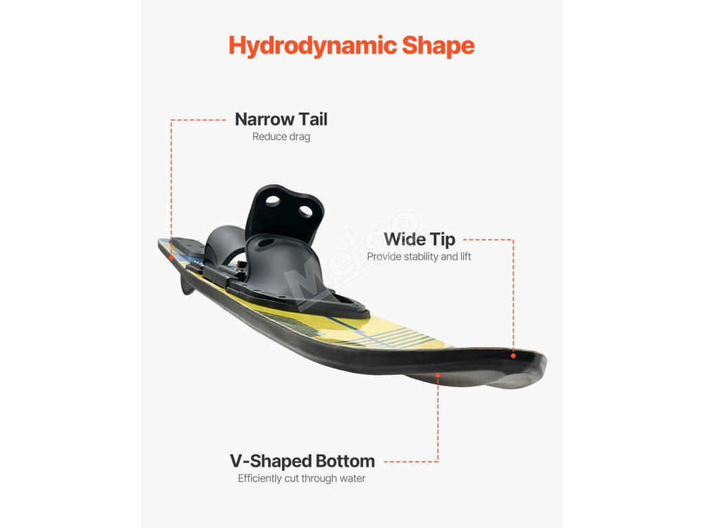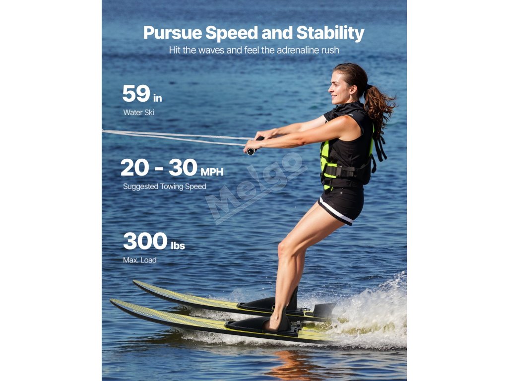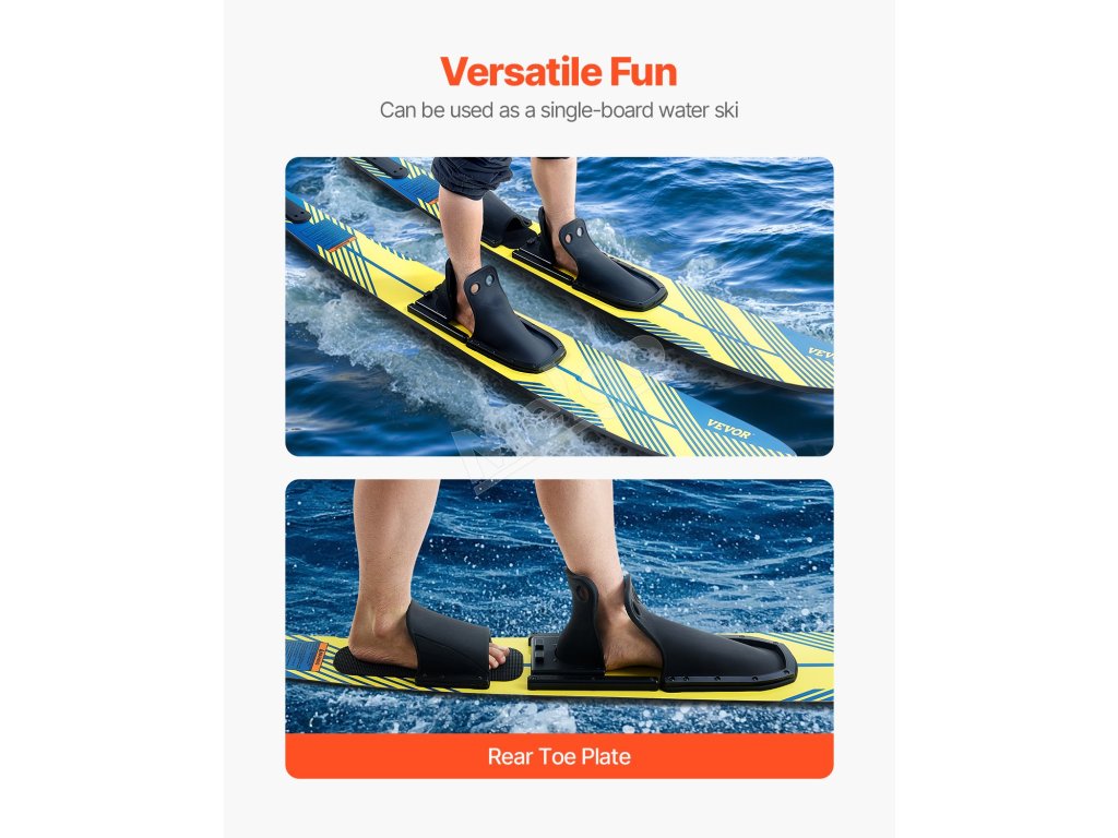 Jazdite na vlnách a užívajte si vzrušenie. Kombinované 59-palcové (150 cm) vodné lyže VEVOR ponúkajú dokonalú kombináciu rýchlosti, vzrušenia a všestrannosti. Tieto lyže s nastaviteľným viazaním X-7 a zadnou špičkou na flexibilnú jazdu na jednej doske zaručujú plynulú, bezpečnú a vzrušujúcu jazdu na vode.