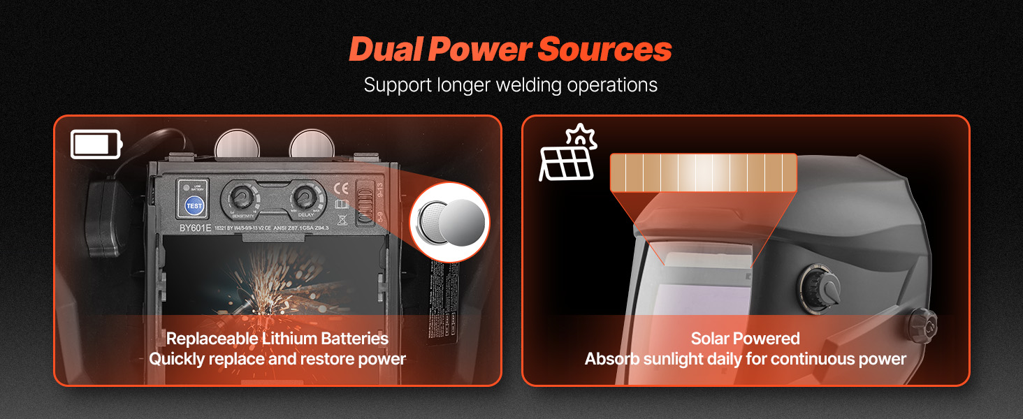 Vďaka podpore solárneho nabíjania aj napájania lítiovou batériou poskytuje naša zváracia kukla true color zváračom dlhodobú a spoľahlivú podporu napájania pre nepretržitú prevádzku.