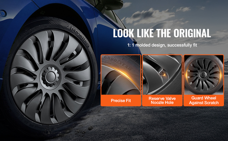 Každý kryt náboja je tvarovaný v pomere 1:1, aby sa dosiahlo úplné priľnutie k pneumatike a zároveň poskytol vzhľad a ochranu porovnateľnú s pôvodnou pneumatikou.