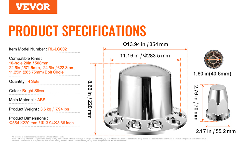 Bez ohľadu na to, či má vaše nákladné vozidlo 20-palcové, 22,5-palcové alebo 24,5-palcové disky alebo 11,25-palcový kruh skrutiek, tento kryt nápravy pre návesy dodá vášmu vozidlu individuálny vzhľad a vaše nákladné vozidlo bude na ceste vynikať.