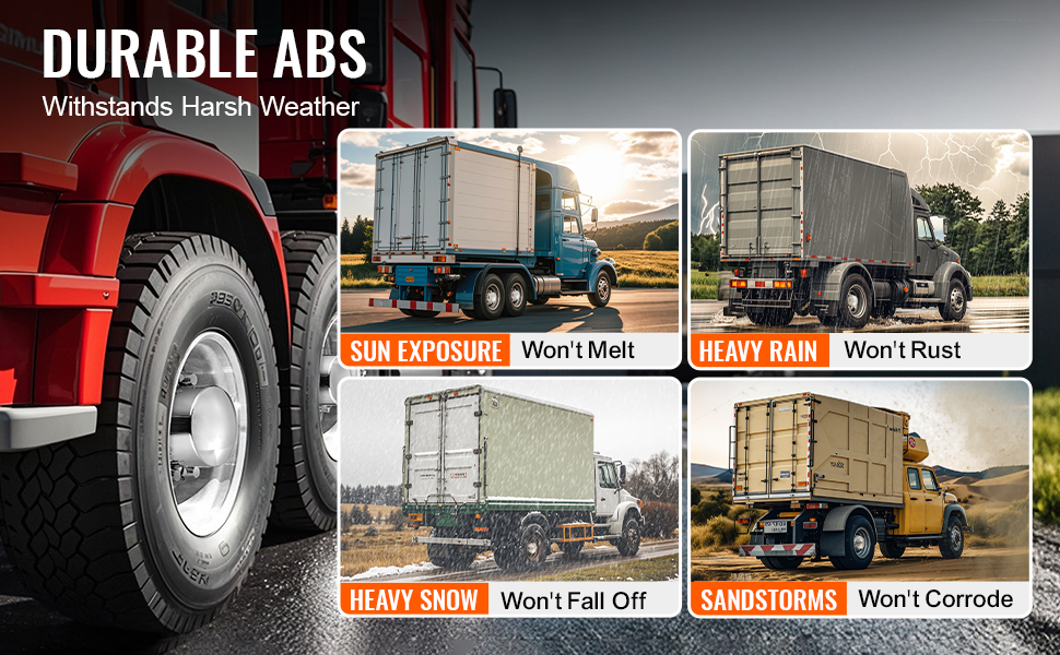 Tento kryt matice kolesa je vyrobený z robustného materiálu ABS a zostáva neporušený aj v extrémnych poveternostných podmienkach, ako je slnečné žiarenie, silný dážď, sneh a piesočné búrky. Poskytuje spoľahlivú ochranu vášho nákladného vozidla aj v náročných podmienkach.