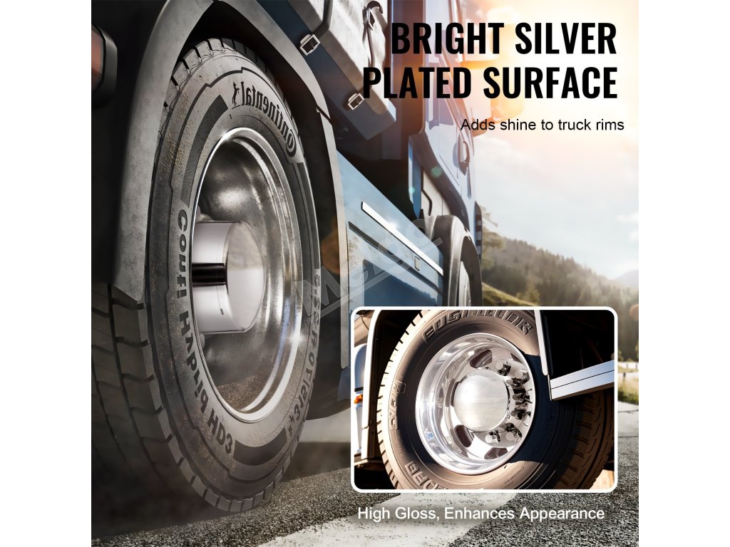 Bez ohľadu na to, či má vaše nákladné vozidlo 20-palcové, 22,5-palcové alebo 24,5-palcové disky alebo 11,25-palcový kruh skrutiek, tento kryt nápravy pre návesy dodá vášmu vozidlu individuálny vzhľad a vaše nákladné vozidlo bude na ceste vynikať.