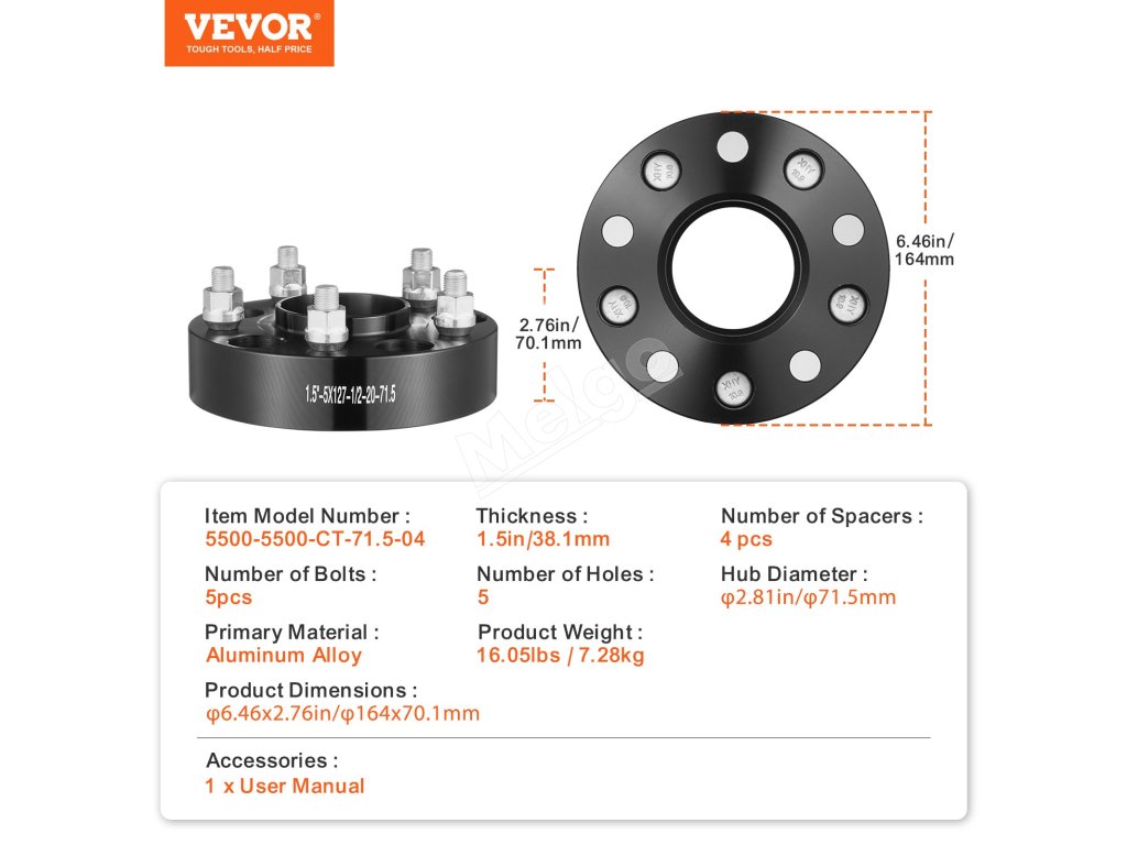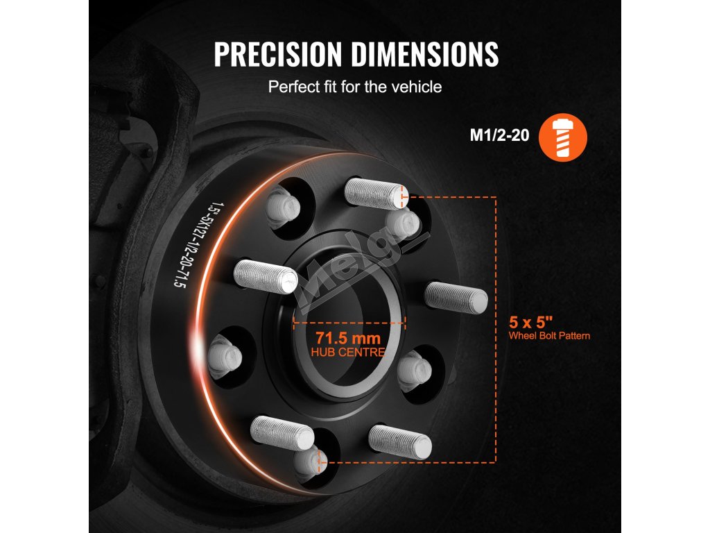 Rozpery kolies 1.5" 5×5.5" 5-dierové 71.5 mm otvor M1/2-20 4 ks čierne
