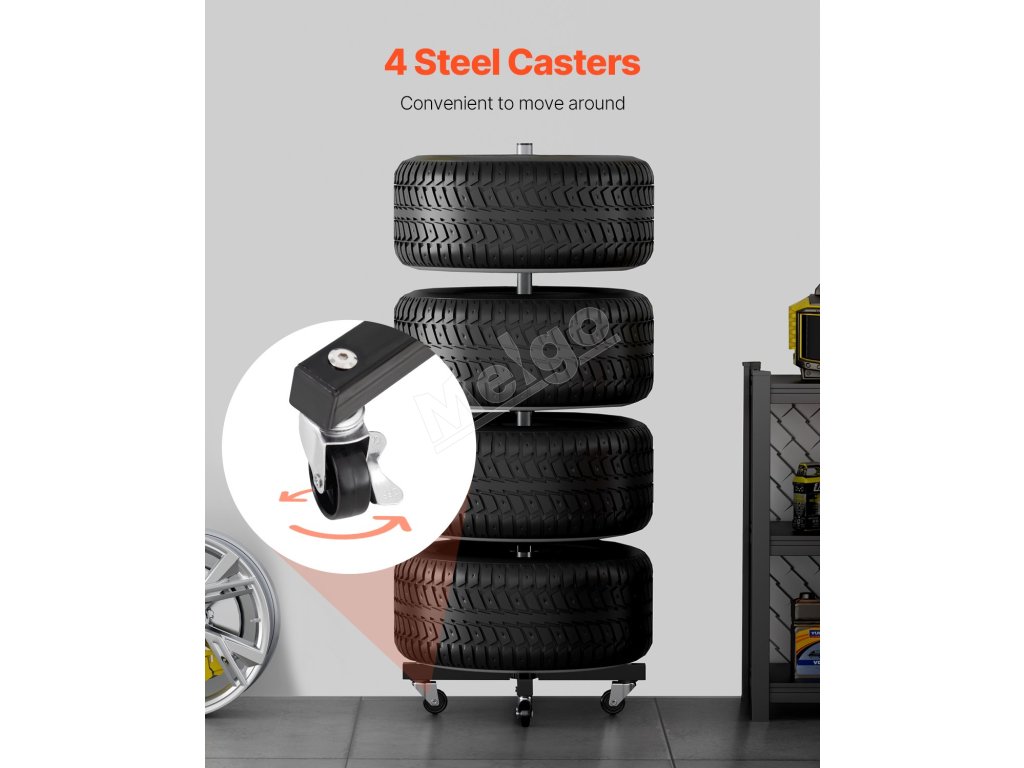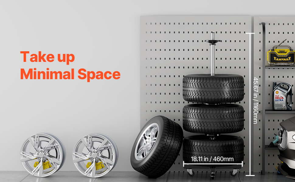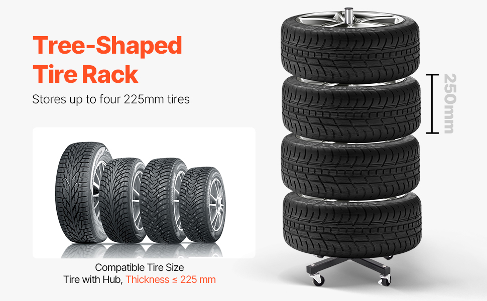 Tento stojan na uskladnenie pneumatík, vybavený 4 robustnými oceľovými kolieskami, umožňuje bezproblémovú prepravu vašich pneumatík do garáže. Vďaka kompaktnej základni s rozmermi 18,11'' x 18,11'' a dizajnu v tvare stromu šetrí pojazdný stojan na pneumatiky miesto tým, že sa elegantne zmestí do rohu.
