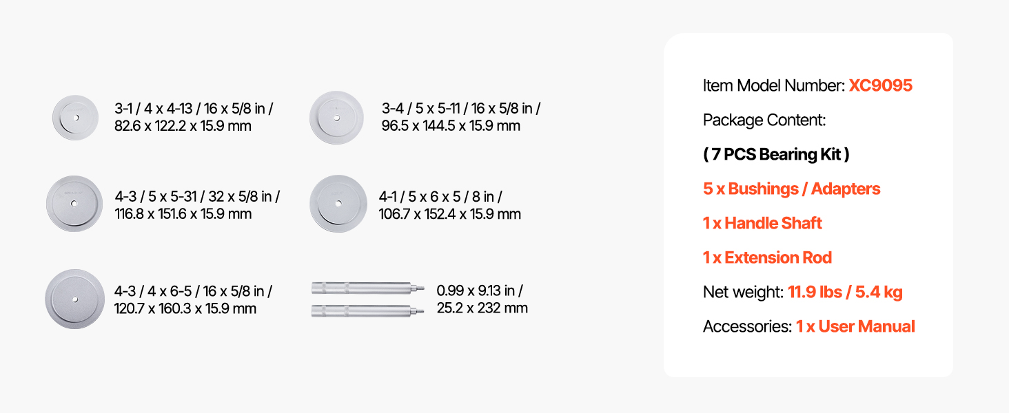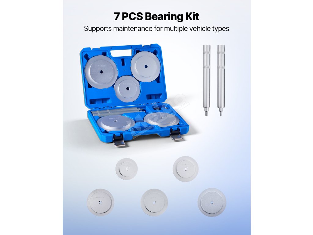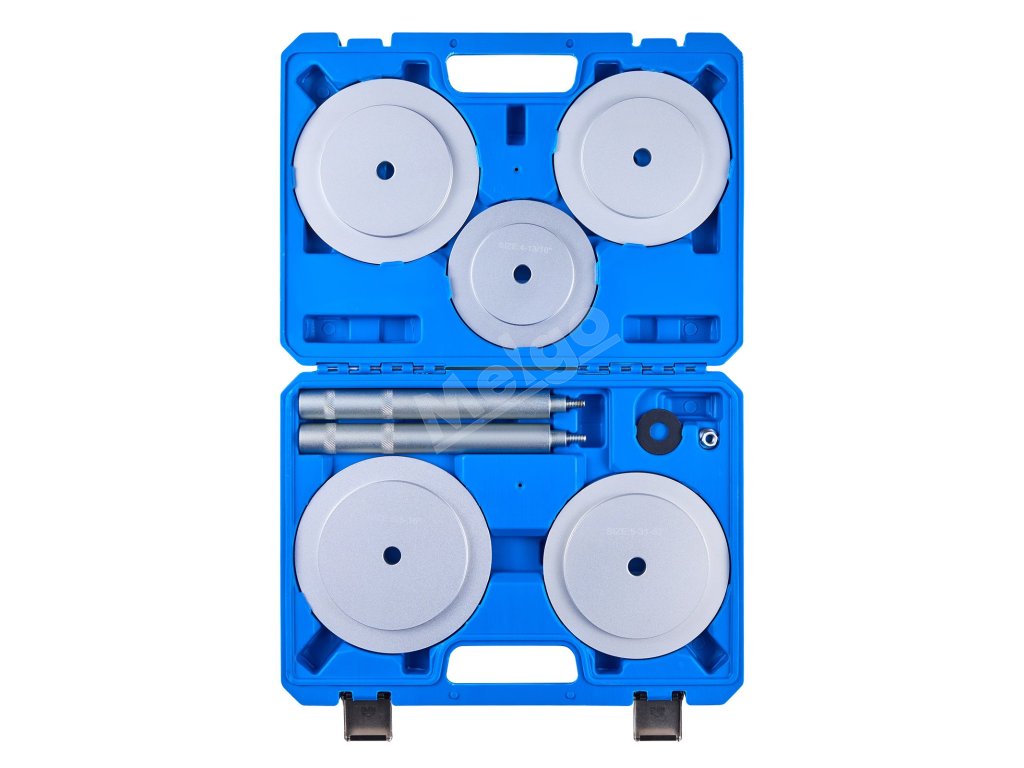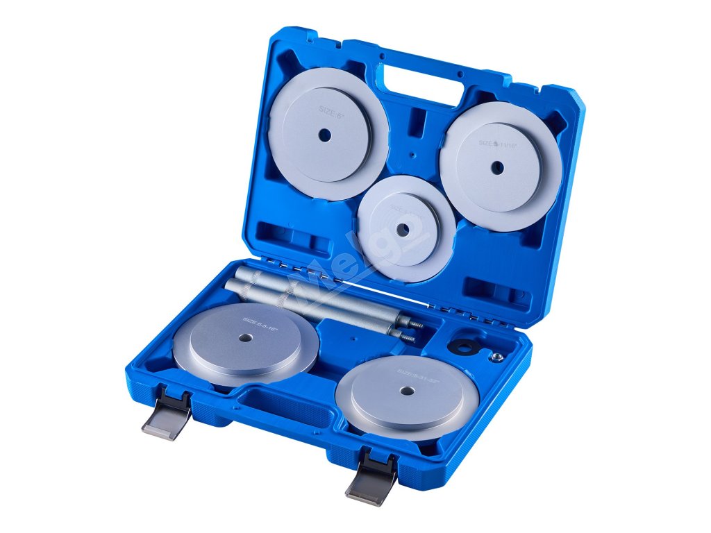 Súprava vodičov ložísk a tesnení obsahuje objímky kotúčov vo viacerých veľkostiach a kompletný montážny nástroj v balení. Naša súprava na lisovanie ložísk vám umožní rýchlu a bezpečnú montáž a splní vaše požiadavky na demontáž ložísk.