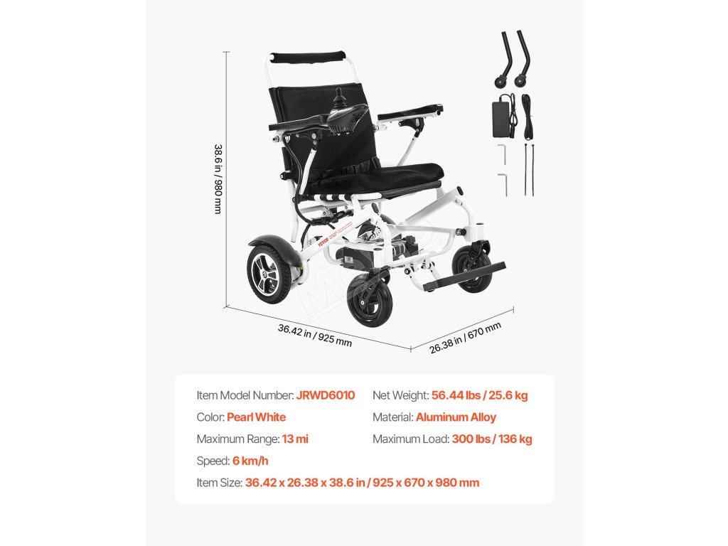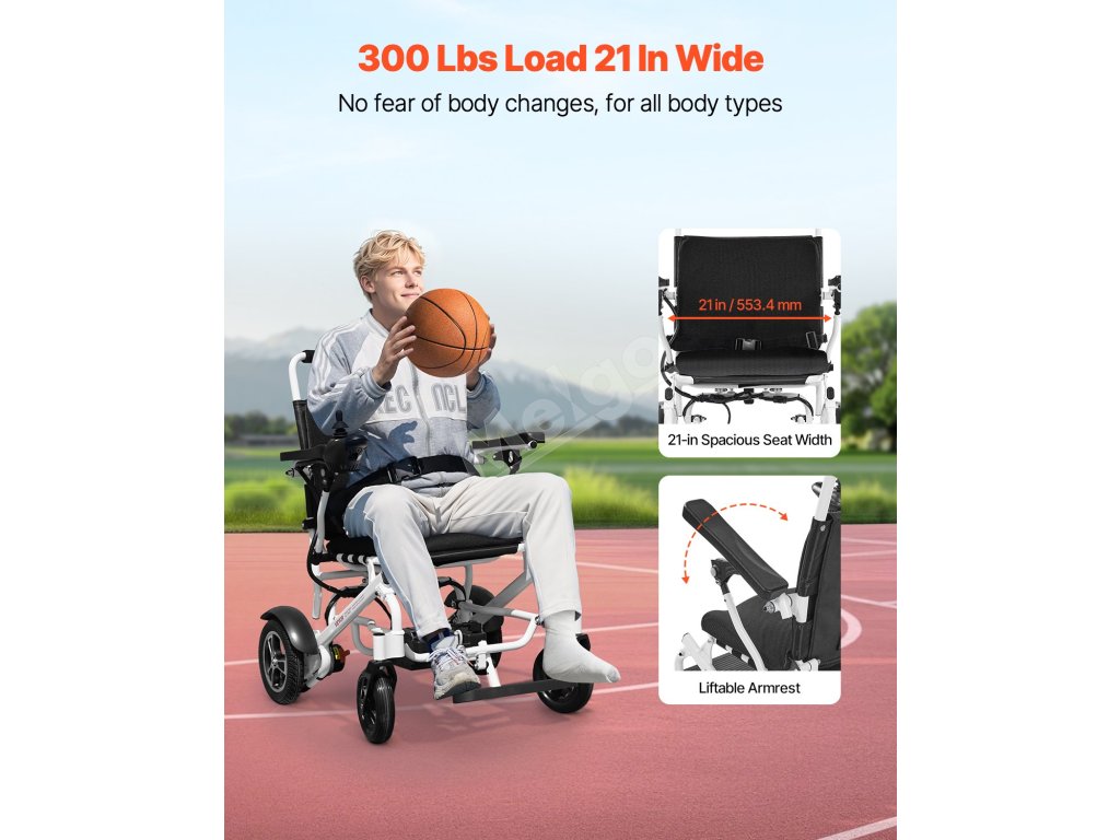 Elektrický vozík pre dospelých 136kg, skladací, 21km, 53cm sedadlo