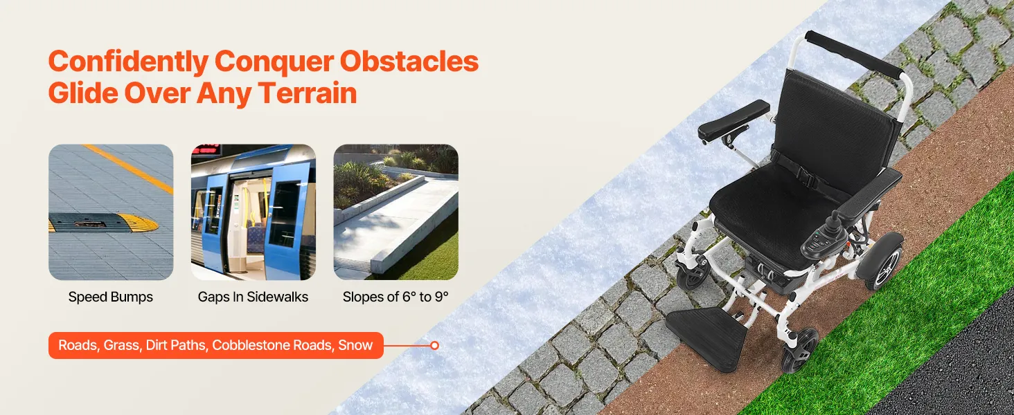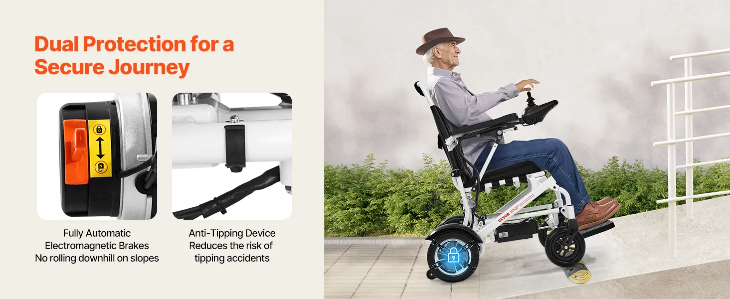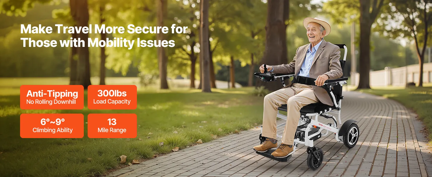Náš elektrický invalidný vozík má skladací dizajn pre jednoduché skladovanie a pohodlné cestovanie. Jeho pneumatiky pohlcujúce nárazy a vynikajúca schopnosť stúpania mu umožňujú ľahko zvládnuť rôzne terény, čo zaručuje plynulú jazdu.