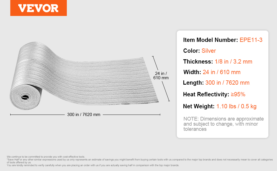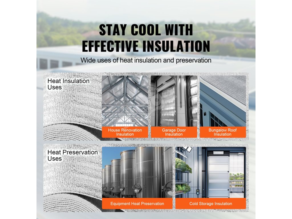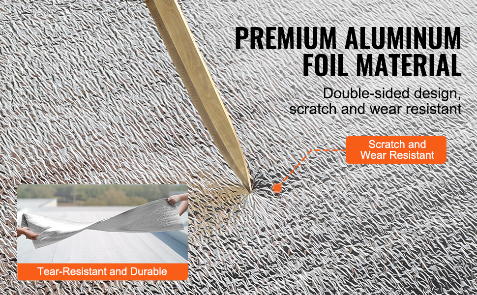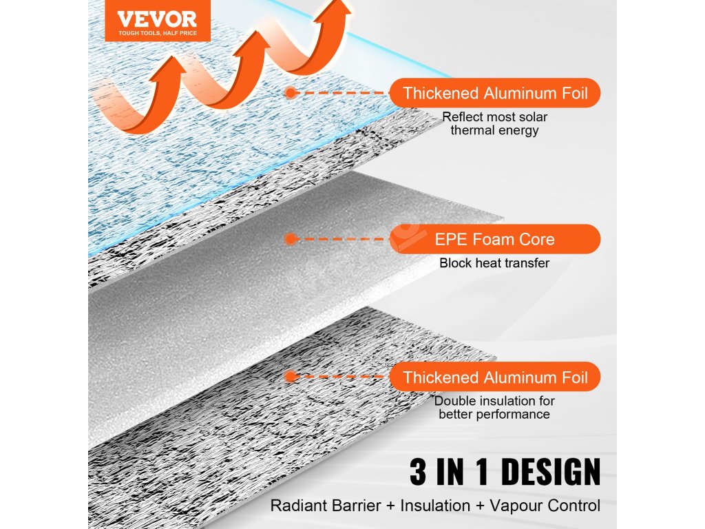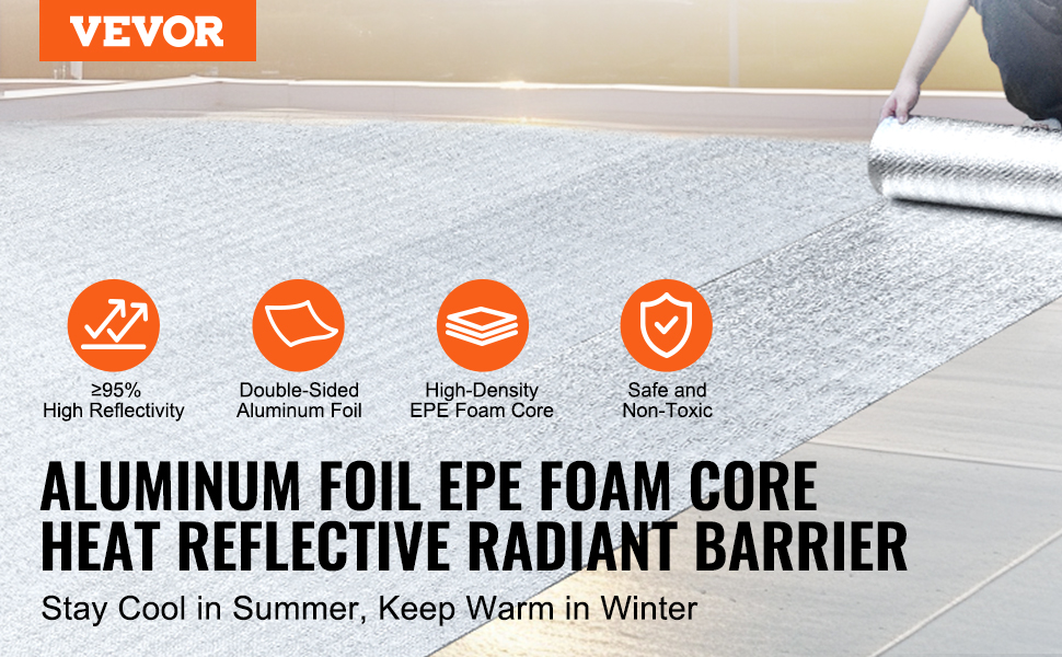 Dvojitá reflexná izolačná rolka VEVOR sa vyznačuje ≥ 95 % vysokou odrazivosťou, pričom využíva dvojitú reflexnú hliníkovú fóliu a penové jadro EPE s vysokou hustotou. V lete účinne blokuje slnečné žiarenie a v zime zabraňuje stratám tepla v interiéri, čím udržiava príjemnú teplotu v interiéri.